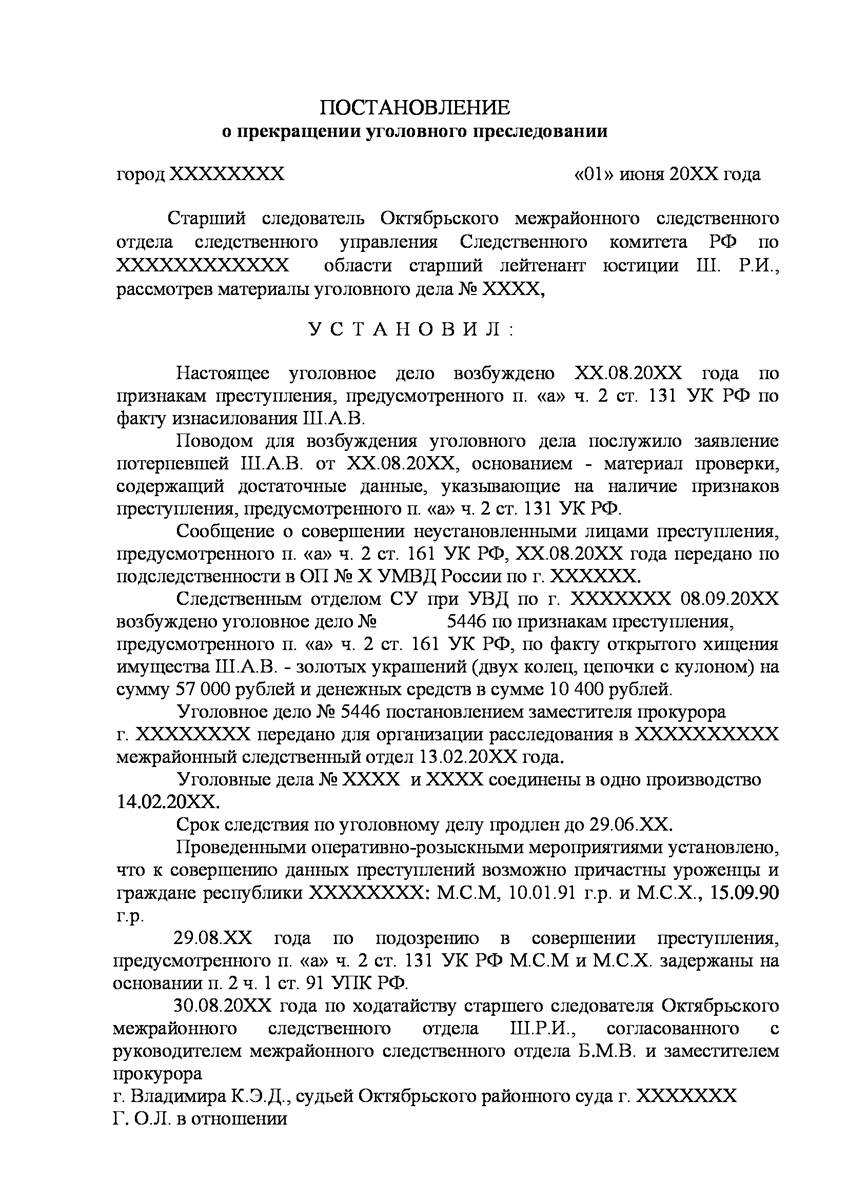 Адвокаты в Смоленске добился прекращения уголовного дела на стадии предварительного расследования по реабилитирующим основаниям в отношении двух граждан иностранного государства обвиняемых органами предварительно следствия в совершении преступления предусмотренного п. «а» ч.2 ст.131 УК РФ (изнасилование совершенное группой лиц) и п."а" , п."г" ч.2 ст.161 УК РФ (грабёж), наказание за которое предусматривает лишение свободы от восьми до пятнадцати лет, то есть преступление, которое в соответствии с ч.5 ст.15 Уголовного Кодекса Российской Федерации отнесено к категории особо тяжких преступлений.